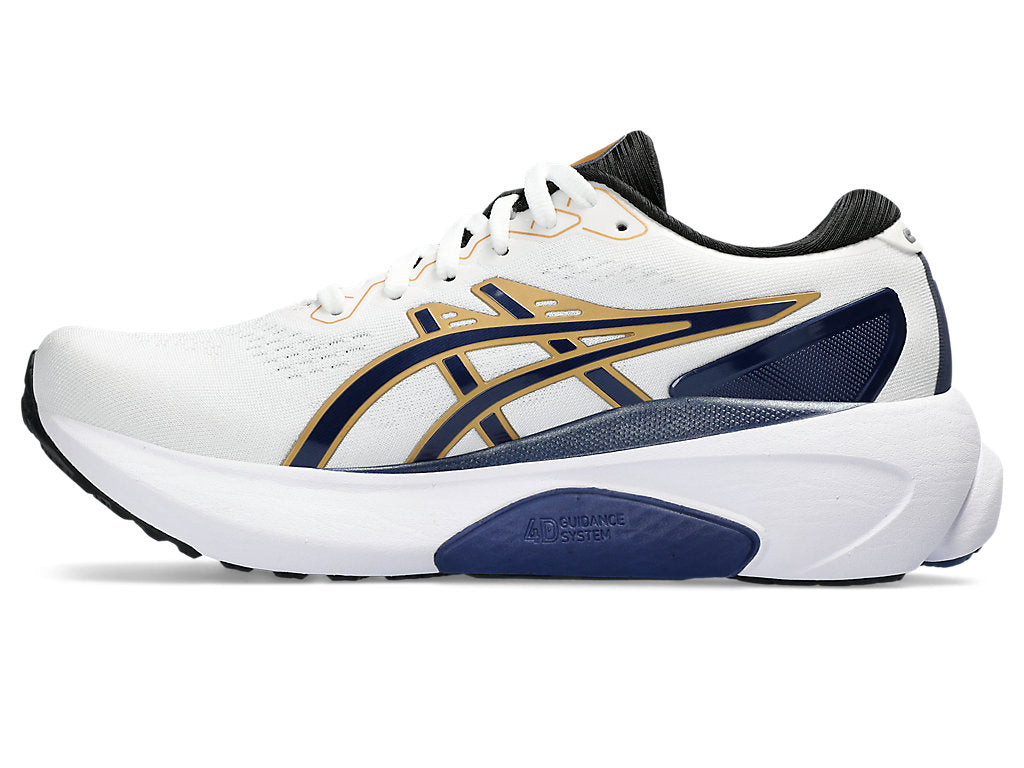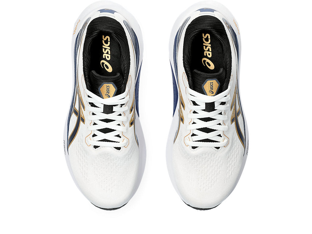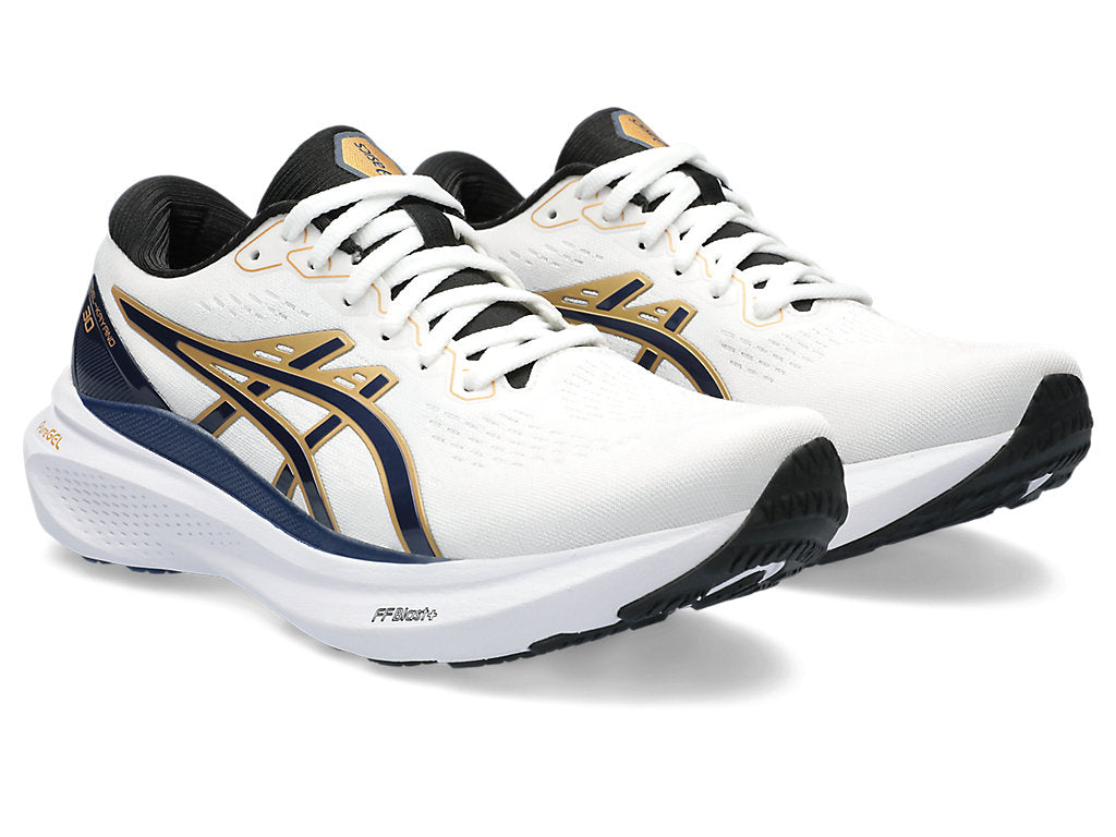 This GEL-KAYANO® 30 shoe is part of the ANNIVERSARY Pack that pays homage to 30 years of the GEL-KAYANO® series. The shoe is rendered with soft touch materials and pearl hues to symbolize the precious jewel that's given to a significant other on a couple's 30th anniversary.The new 4D GUIDANCE SYSTEM™ helps provide adaptive stability. This helps you experience a more supportive and balanced stride during your distance training.