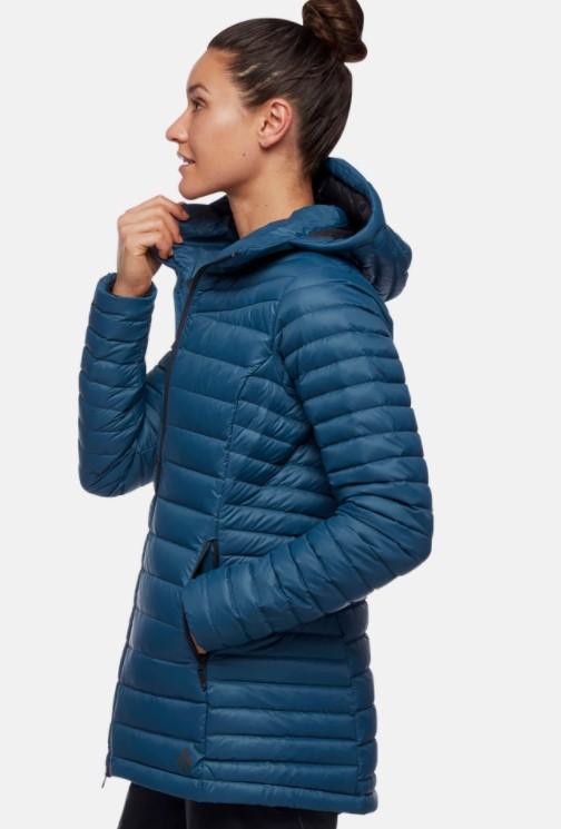 A down insulating jacket, the Access Parka for women is designed to provide all the heat needed during low-temperature insurance sessions or cold days in the city. It has a long cut for better protection and superior thermal comfort.