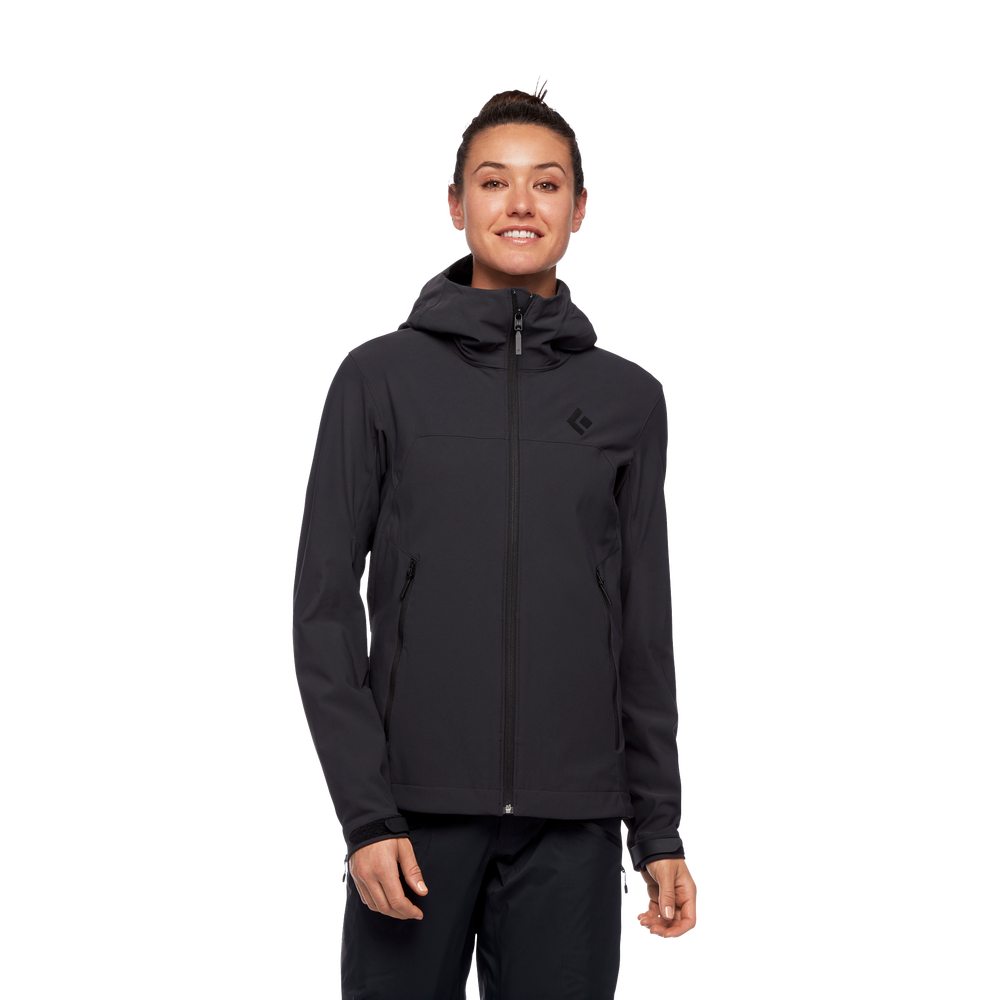 When efficiency is essential, the Black Diamond Dawn Patrol softshell provides ideal wind and light precipitation coverage. Built from a durable four-way stretch fabric with DWR finish, the Dawn Patrol Shell is year-roundly durable. An adjustable hood compatible with a ski helmet and hand pockets compatible with a harness protect you.
