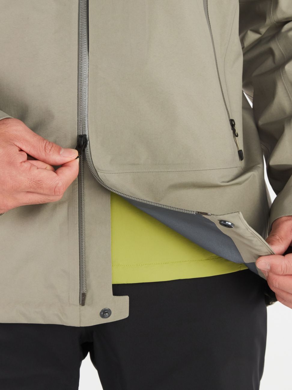 A proven performer in the most severe alpine conditions, the Men's Alpinist Jacket will be your go-to for days breaking trail or chasing skin tracks. Built with ultra-durable, yet breathable Recycled GORE-TEX Pro, this waterproof jacket is here to keep you dry anytime the storm clouds gather. When the temps drop, pull up the attached hood and adjust the drawcord hem for extra coverage.