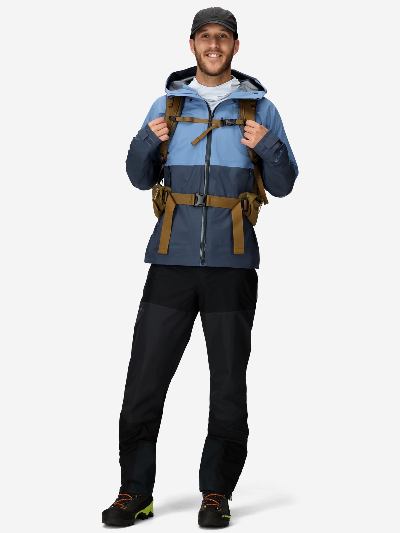 IN THE ZONE. Brave alpine extremes, rough terrain, and relentless rain from trailhead to summit with a lighweight zoned-fabric design that boosts comfort, mobility, and durability where you need it most. 3L GORE-TEX® C-KNIT™ fabric is waterproof and windproof with an ultra-breathable knit backer and water-shedding C0 DWR (Durable Water Repellent). Durable plain-weave above the chest pairs with a seamless shoulder for increased packability, range of motion, and leakproof performance under a heavy pack. Ripstop fabric below the chest helps prevent snags and tears on rock, ice, or trees while offering lightweight breathability for high-output ascents. Two-way pit zips allow you to cool down quickly on grueling pitches, while a two-way center-front zipper and higher-placed hand pockes are essential for use with a harness and pack hip belt. VELCRO® adjustable cuffs, adjustable drawcord hem, and an adjustable, helmet-compatible hood ensure rogue raindrops and gusty peak winds don’t sneak in.
