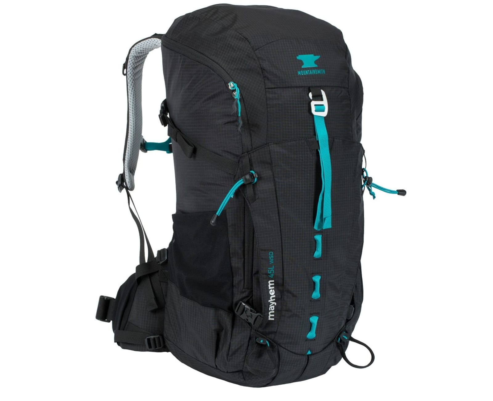 The panel-loading Mountainsmith Women's Mayhem 45 WSD backpack has the versatility, storage capacity (2620 cubic inches), and organizational features that make it ideal for lightweight backpacking or weekend travel. Ensuring load-hauling performance, the pack has a sturdy, women's specific suspension system, the likes of which is found usually only on larger capacity backpacks.