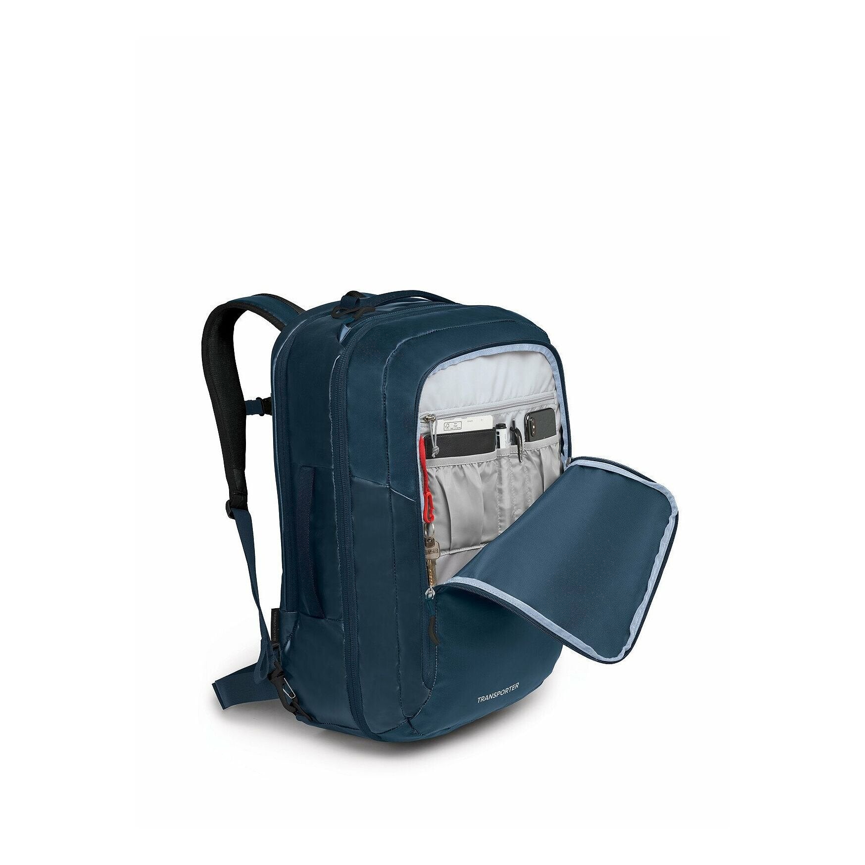 Designed with durable materials to withstand the rigors of travel, the Transporter® Carry-On Bag is sized to fit as much as possible within domestic airline carry-on standards. This bag is ready for takeoff with a zippered external pocket for toiletries and rear panel access to a padded sleeve sized for 16-inch laptops. Featuring a fully-flat opening for easy packing, dual zippered mesh interior pockets, luggage pass-through and a detachable shoulder strap. Sustainably made from bluesign® approved recycled materials with a PFC-free DWR treatment that sheds moisture.