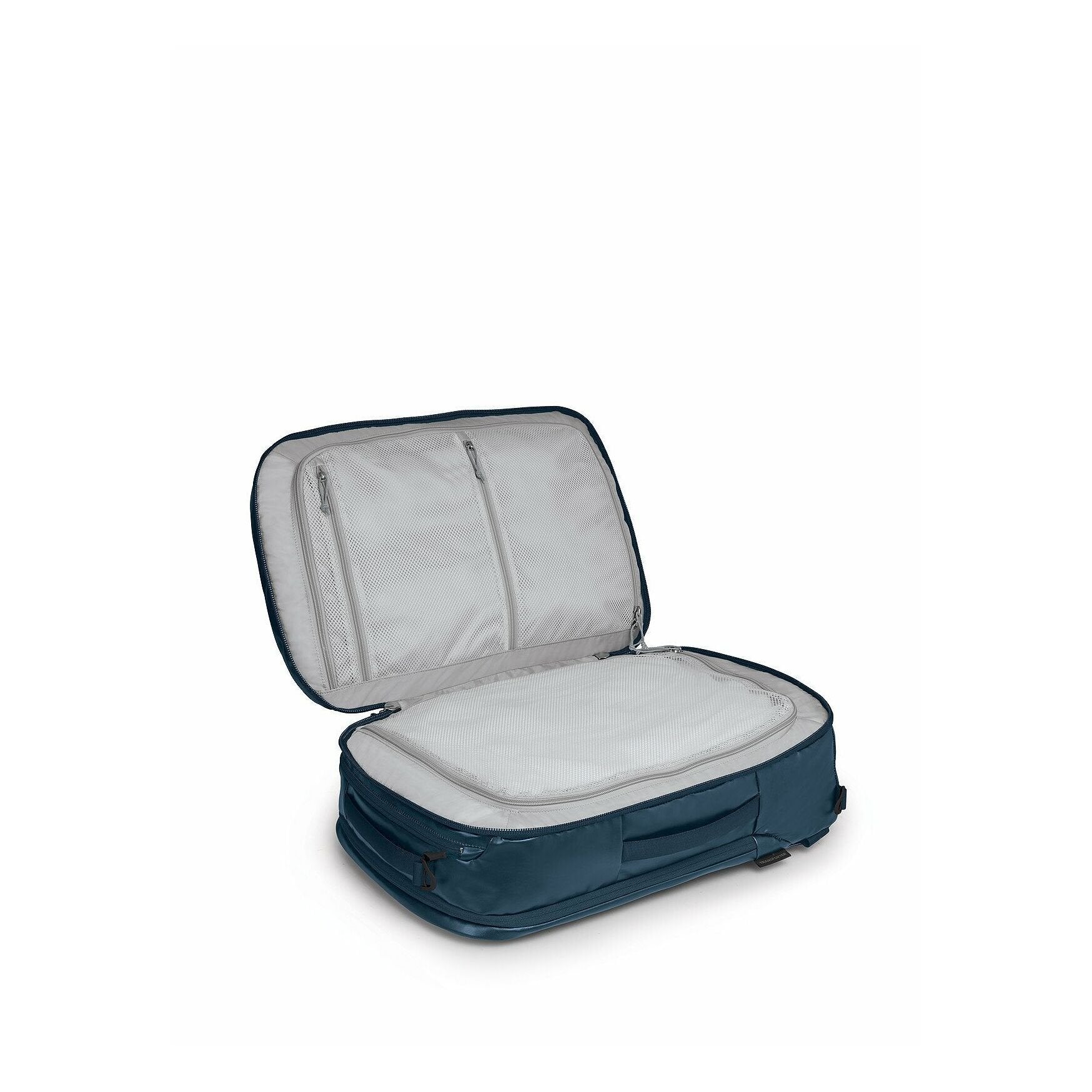 Main bag is divided 1/3, 2/3 by a main zip and opens fully flat for easy packing