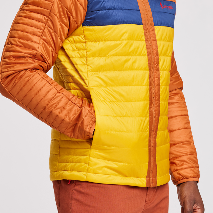 Fall hiking, cool-weather rock climbing, summer camping—the versatile Capa Jacket is here for it all. Made with Primaloft® Gold P.U.R.E. (Produced Using Reduced Emissions) 100% recycled synthetic insulation, this jacket retains warmth even when wet. To keep you really comfortable in weather, it also features a water-resistant recycled nylon shell. Packable, breathable, warm, the Capa is great for layering or as that jacket you bring on every adventure. Also available in Women’s.