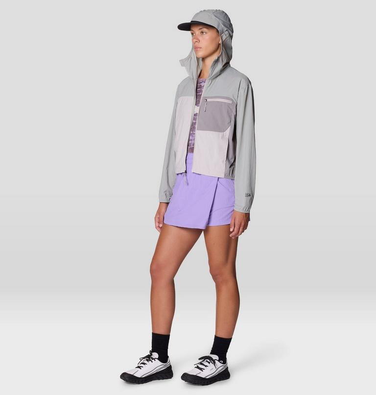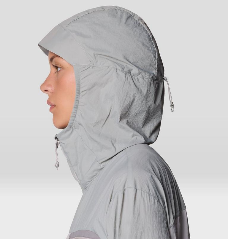 Whether battling gusts on a ridgeline or getting winded on steep ascents, this lightweight layer keeps you from getting swept away by forces of nature. It's super soft, quiet, and cuts through the wind without weighing you down. The laminated brim and halo cinch keep your hood in place, and it includes hand pockets that are perfect for fending your hands when the chill picks up. Stuff it into its chest pocket and clip it to your pack when the air loses its bite, and you can forget it’s there until the next breezy-but-not-easy byway.