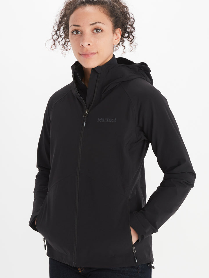 Before meeting your team at the trailhead, zip up the Alsek women's jacket. Its stretchy softshell fabric and articulated elbows facilitate movement as you avoid debris on uncharted routes. If rain clouds move in, the durable PFC-free water-repellent finish offers an extra layer of weather protection. Block gusts of wind with the drawcord hem and VELCRO® cuffs. Just made it for an epic sunset? Access your phone and other gear in the zipped hand and inner pockets.