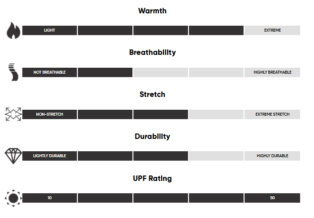• Upper Thigh, Knee & Seat: bluesign® approved 92% Polyester, 8% Spandex